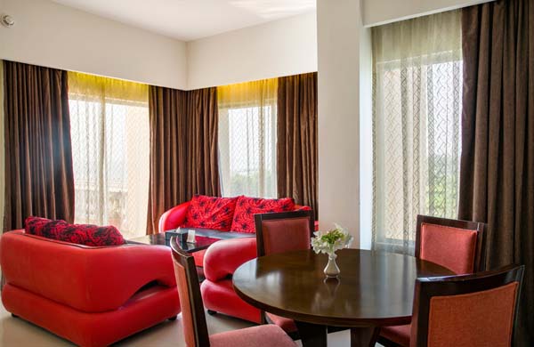 Junior Suite comprises of 1 Double Bed or 2 Twin Beds, 2 Bedside Tables, a Desk & Chair. The room is furnished with wall to wall carpeting, trendy furnishings and a balcony.